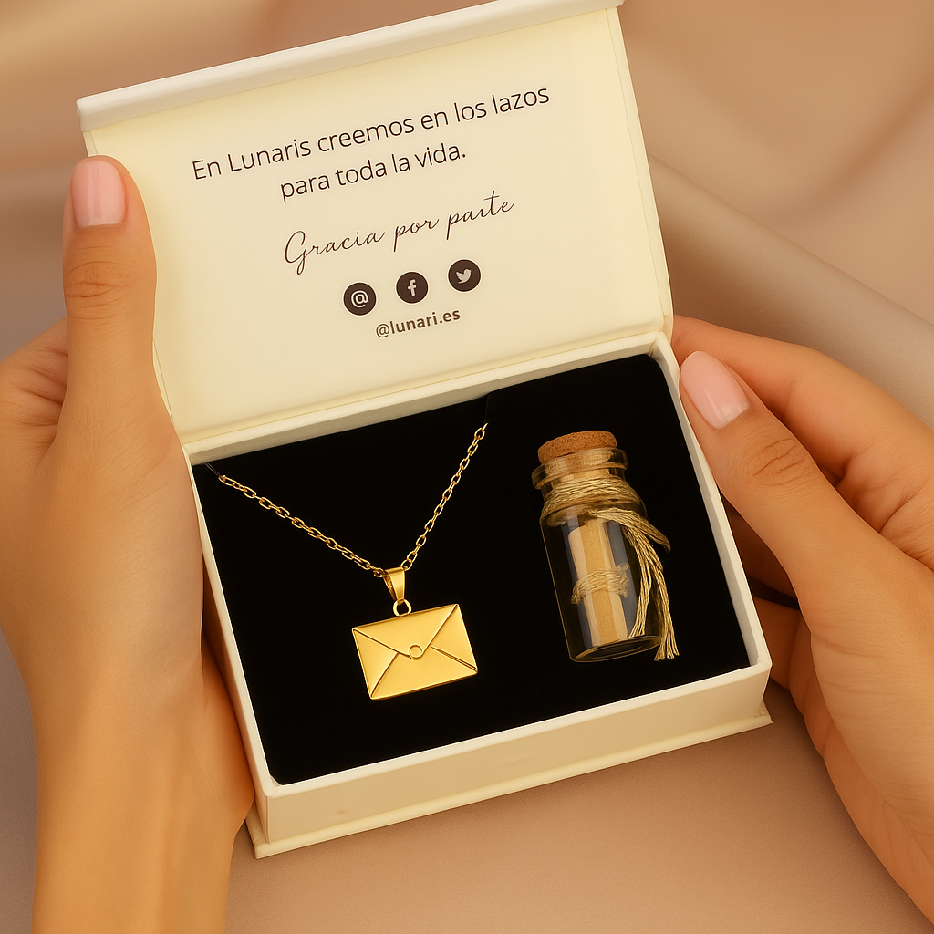 En Lunaris Jewelry cada detalle importa, por eso nuestras piezas llegan en un packaging cuidadosamente diseñado, pensado para ofrecer una experiencia mágica desde el primer instante.